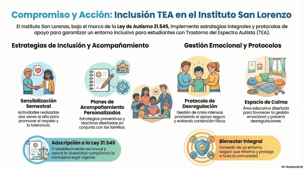 Además, toda nuestra comunidad educativa está capacitada y actualizada en las necesidades de los estudiantes, pudiendo así dar respuesta al desafío de seguir avanzando en la construcción de espacios inclusivos que visibiliza, reconoce y valora a cada uno de ellos/as, desde sus diferencias y particularidades, aportando así a la formación de ciudadanos integrales de nuestro país.