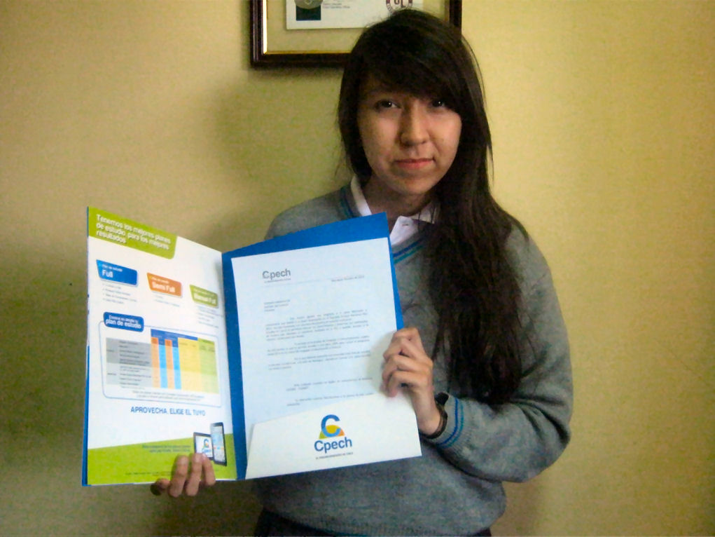 Además ahora, con ayuda de CPECH, podré prepararme mucho más para la PSU, por eso prometo dar lo mejor que tengo, para ser uno de las mejores puntajes el año siguiente».